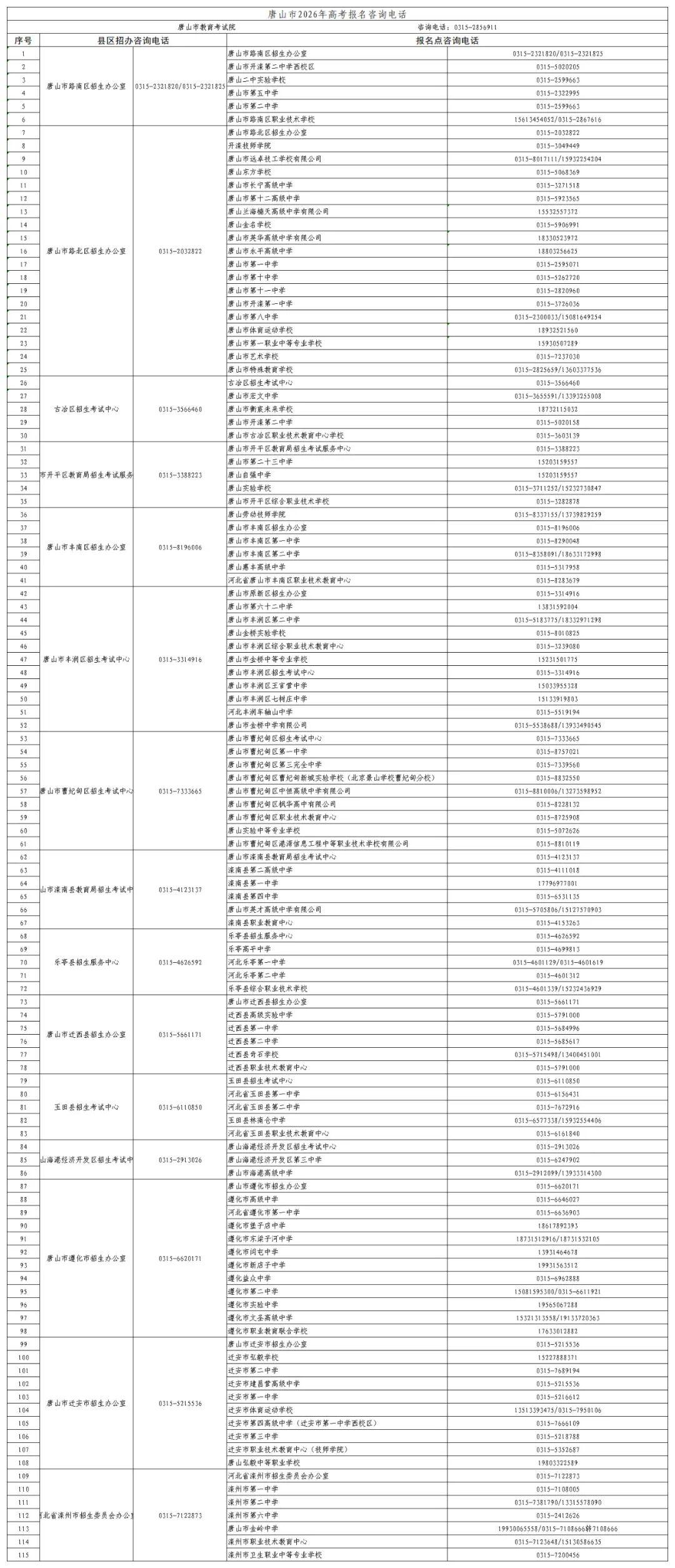 2026年河北省普通高校招生考試報(bào)名工作于10月28日開(kāi)始。為方便考生,現(xiàn)將唐山市各縣區(qū)招生辦、各報(bào)名點(diǎn)咨詢電話公布。若在報(bào)名過(guò)程中有問(wèn)題,可于工作時(shí)間向報(bào)名所在地招生辦及報(bào)名點(diǎn)咨 ...