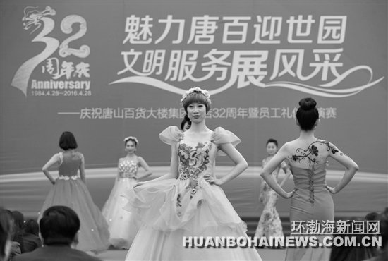 環(huán)渤海新聞網(wǎng)消息 4月28日,唐山百貨大樓集團舉行“魅力唐百迎世園、文明服務展風采”員工禮儀表演賽,迎接世園會的開幕,并慶祝建店32周年。圖為唐百大員工進行服飾表演。 本報記者 閆軍 通訊員 孫芳 ...
