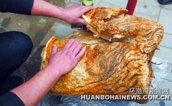 高新區(qū)一村民自家地里翻土“翻”出倆“太歲” 圖為吳先生發(fā)現(xiàn)的棕色“太歲”。記者 劉天玥 攝 環(huán)渤海新聞網(wǎng)消息 (記者 劉天玥)高新區(qū)瓦房莊一村民在自家地里翻土?xí)r發(fā)現(xiàn)兩個(gè)“怪物”,后經(jīng)專(zhuān)家鑒定為“肉靈 ...