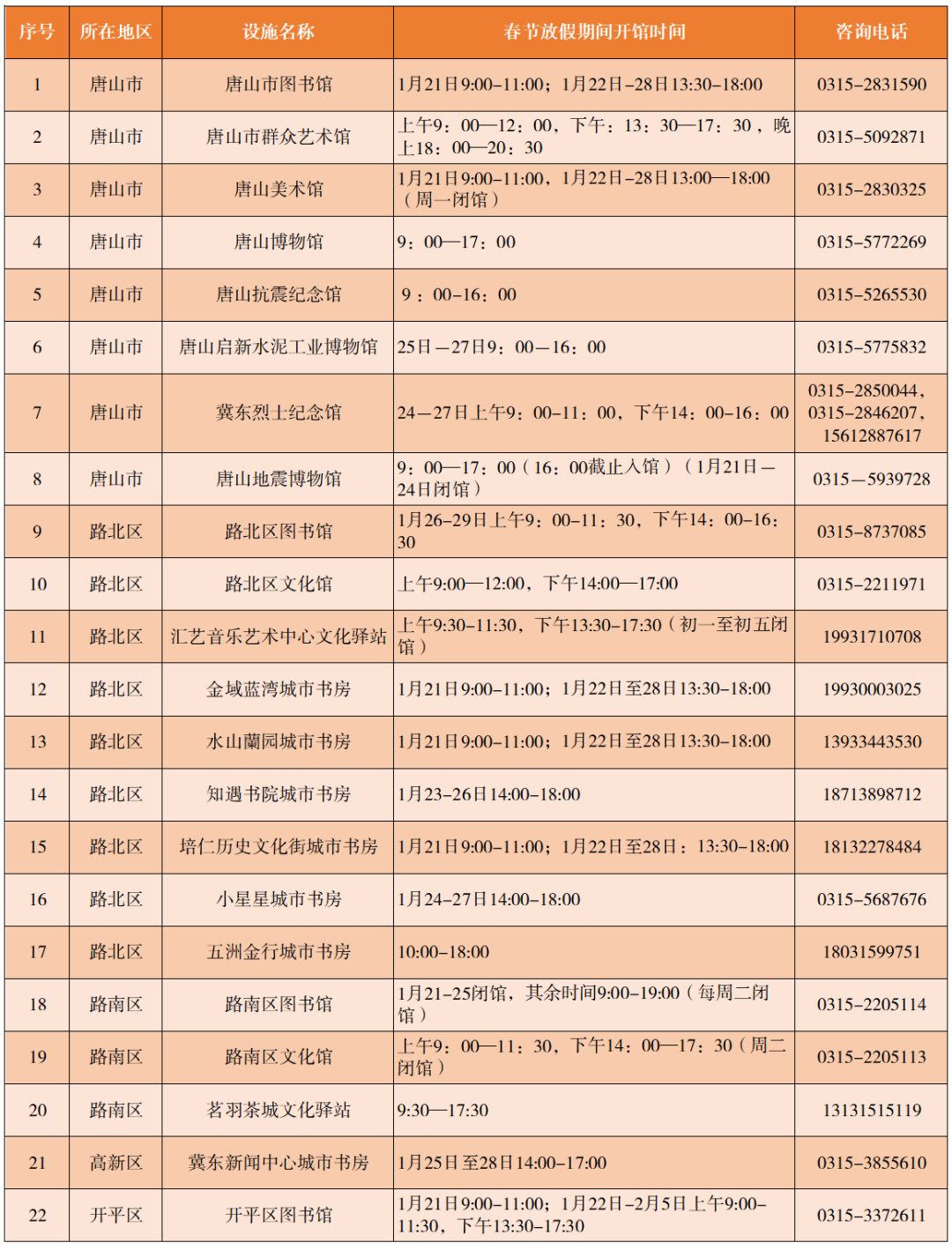 2023年春節(jié)放假期間公共文化設施開館時間一覽表