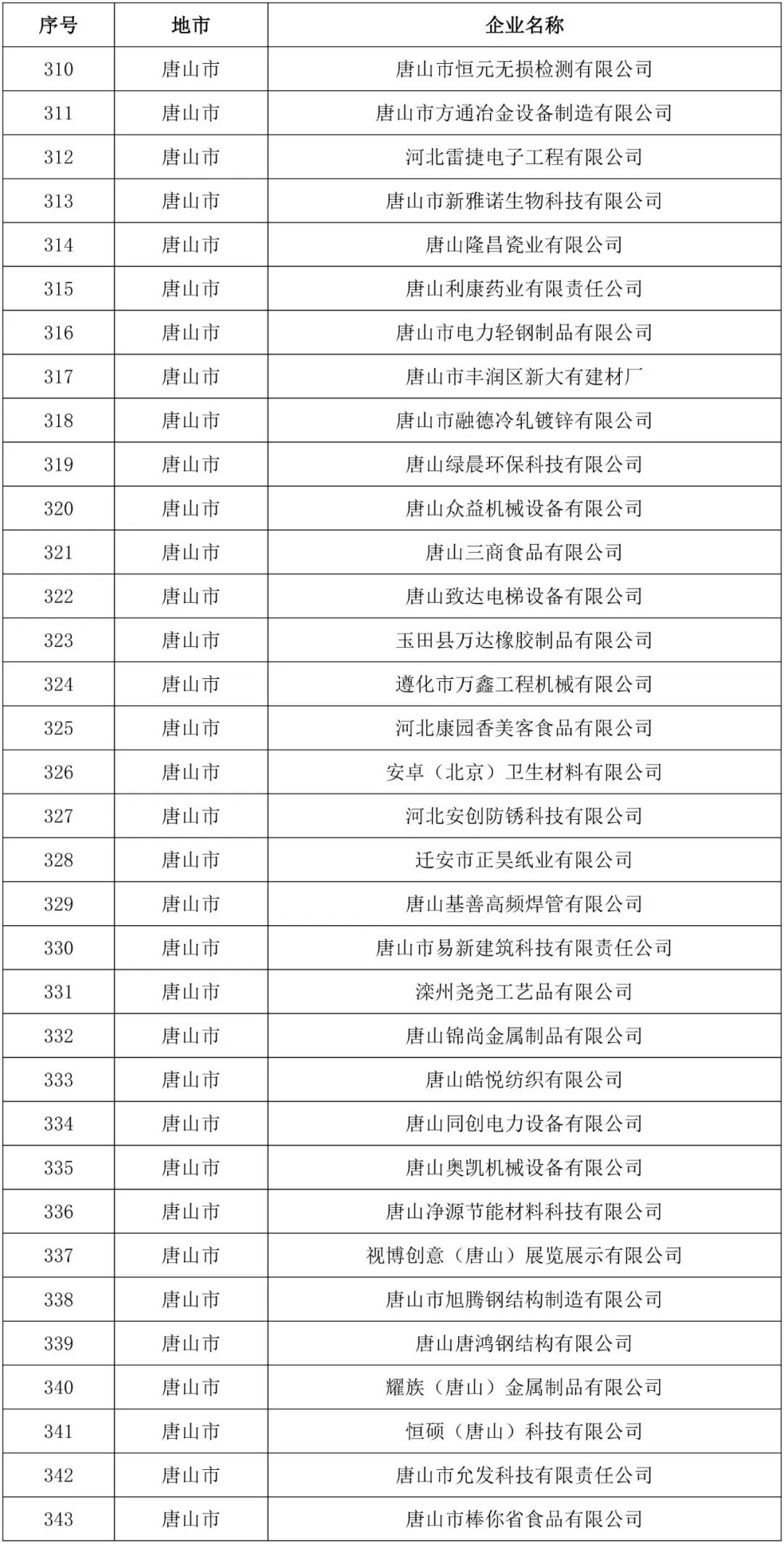 近日,河北省工業(yè)和信息化廳網(wǎng)站發(fā)布了《關(guān)于擬通過評價2023年第一批河北省創(chuàng)新型中小企業(yè)名單的公示》,其中,唐山有163家企業(yè)入選,詳情如下: 河北省工業(yè)和信息化廳 關(guān)于擬通過評價 ...