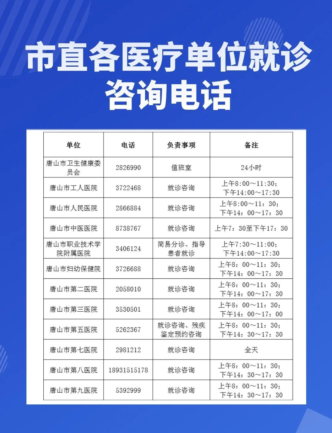 為進(jìn)一步暢通群眾就醫(yī)問診渠道,建立便捷就醫(yī)服務(wù)體系,提高解決群眾就醫(yī)問題效率,現(xiàn)通過市衛(wèi)健委微信公眾號(hào)向群眾公布市直各醫(yī)療單位就診咨詢電話。 來源: 唐山市衛(wèi)生健康委