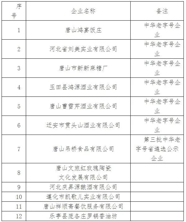 唐山市商務(wù)局關(guān)于推薦申報2023年“河北老字號”企業(yè)的公示 根據(jù)《河北老字號認(rèn)定管理辦法》及省商務(wù)廳有關(guān)工作要求,我局組織專家進(jìn)行了初步評審,擬推薦唐山鴻宴飯莊等12家企 ...