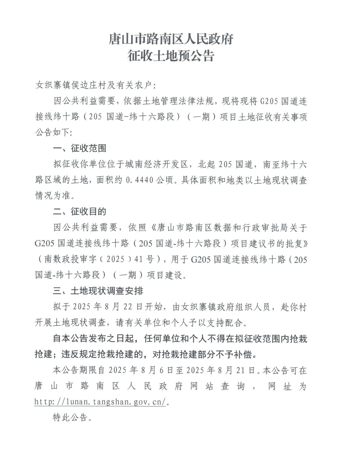 唐山路南區(qū)人民政府發(fā)布最新征地公告
