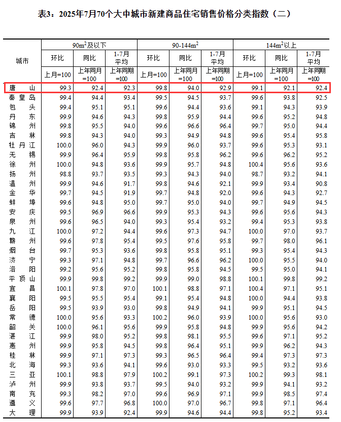 8月15日,國(guó)家統(tǒng)計(jì)局發(fā)布2025年7月份70個(gè)大中城市商品住宅銷(xiāo)售價(jià)格變動(dòng)情況統(tǒng)計(jì)數(shù)據(jù) 來(lái)源:央視財(cái)經(jīng)(ID:cctvyscj)綜合國(guó)家統(tǒng)計(jì)局